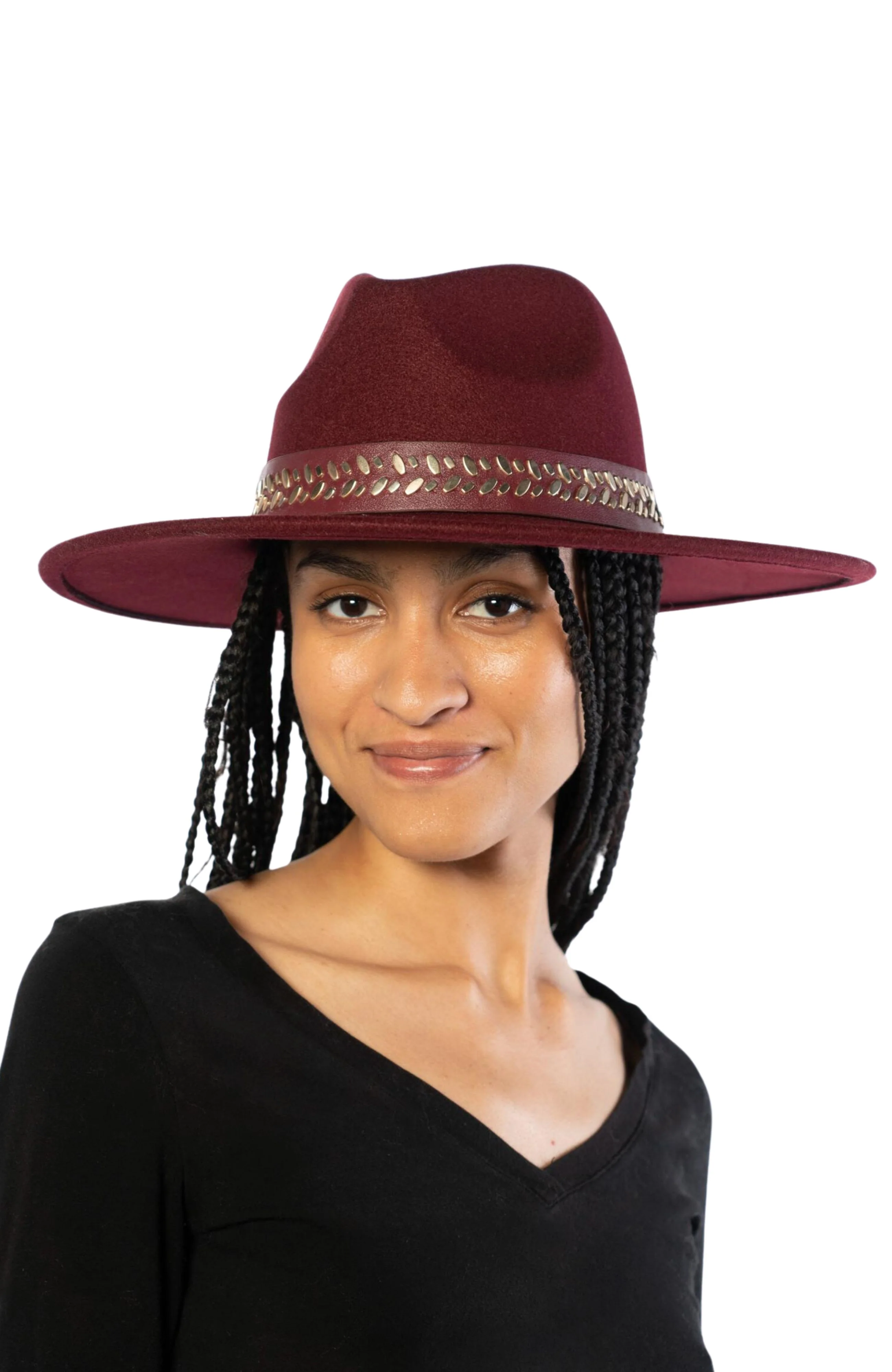 Elevate any outfit with our studded band wool blend panama hat.