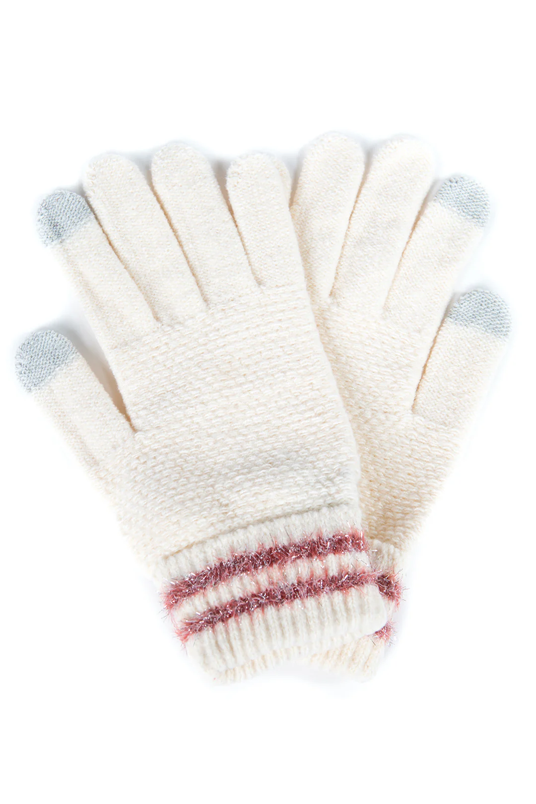 Striped Cuff Plush Knit E-touch Glove