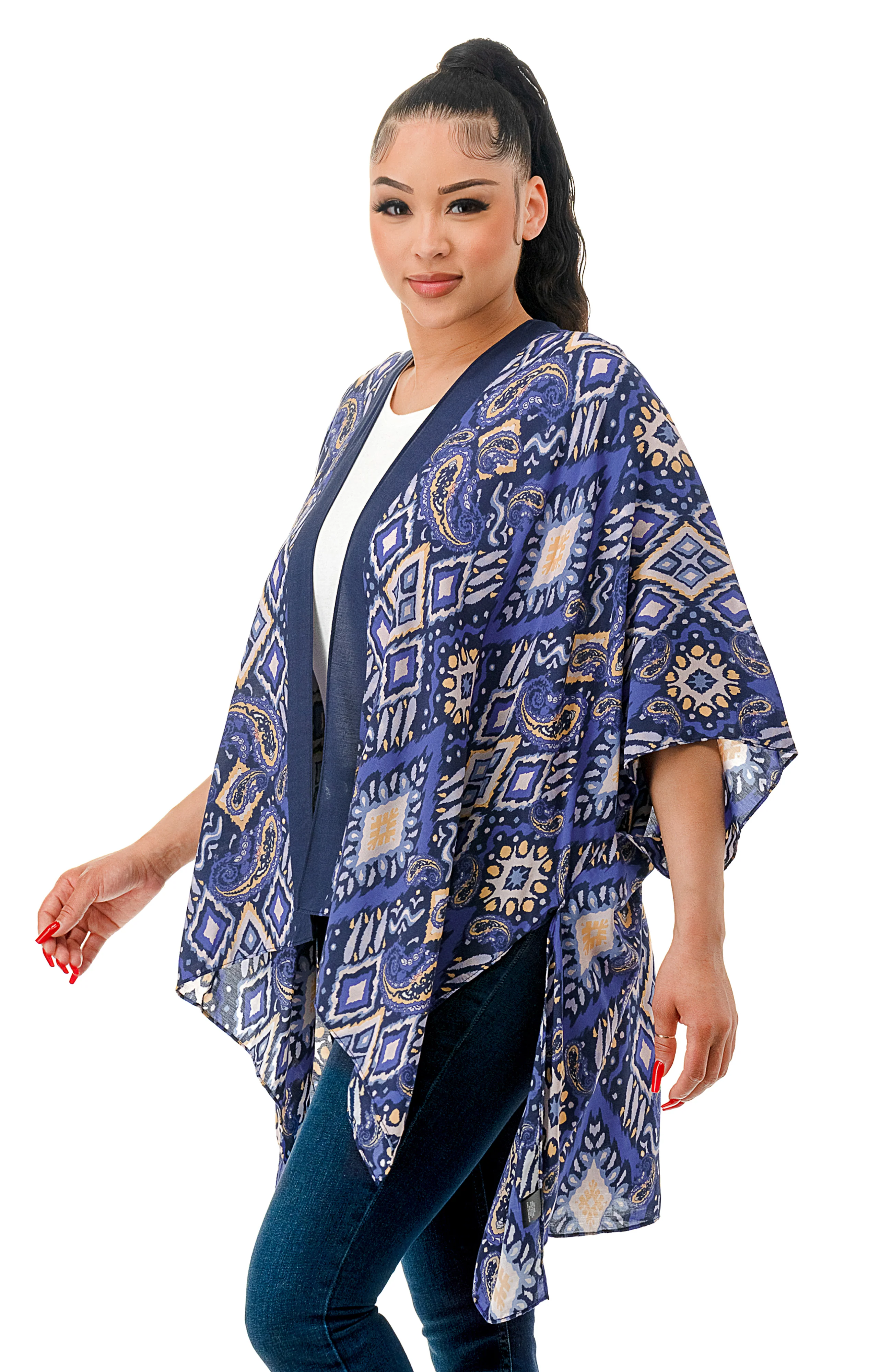 Make a statement with our Paisley Print Kimono, perfect over jeans and a tee or as a coverup at the beach or pool.