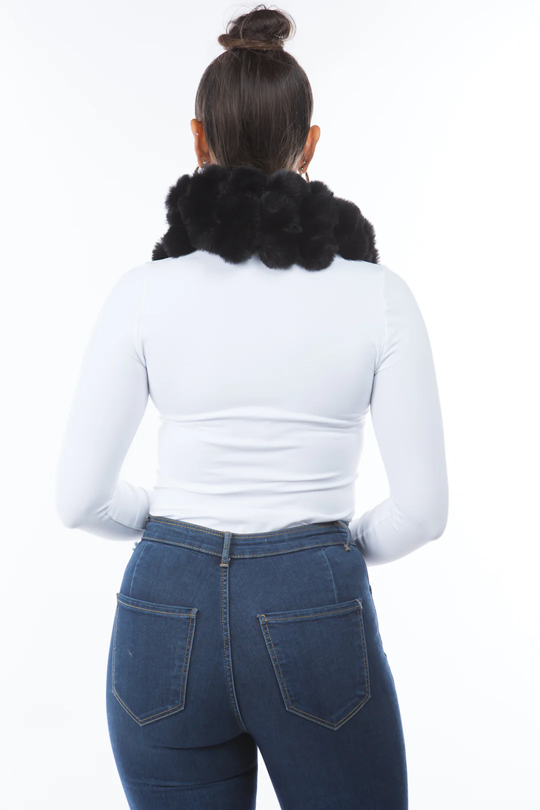 The Riley scarf is our signature faux fur three row pom loop scarf. Wrap around twice for a luxurious look and feel.